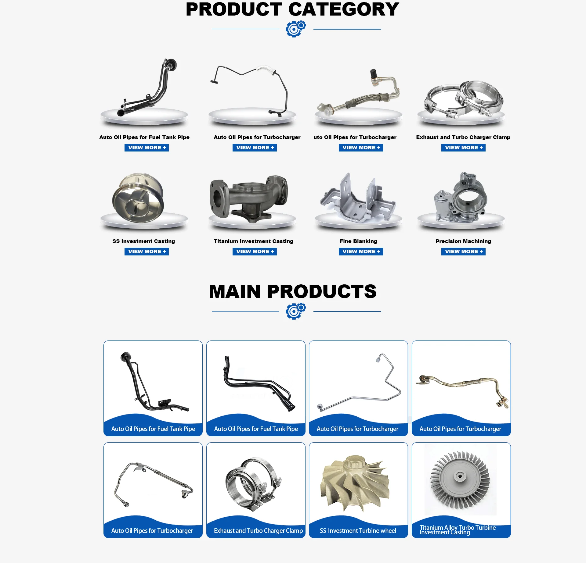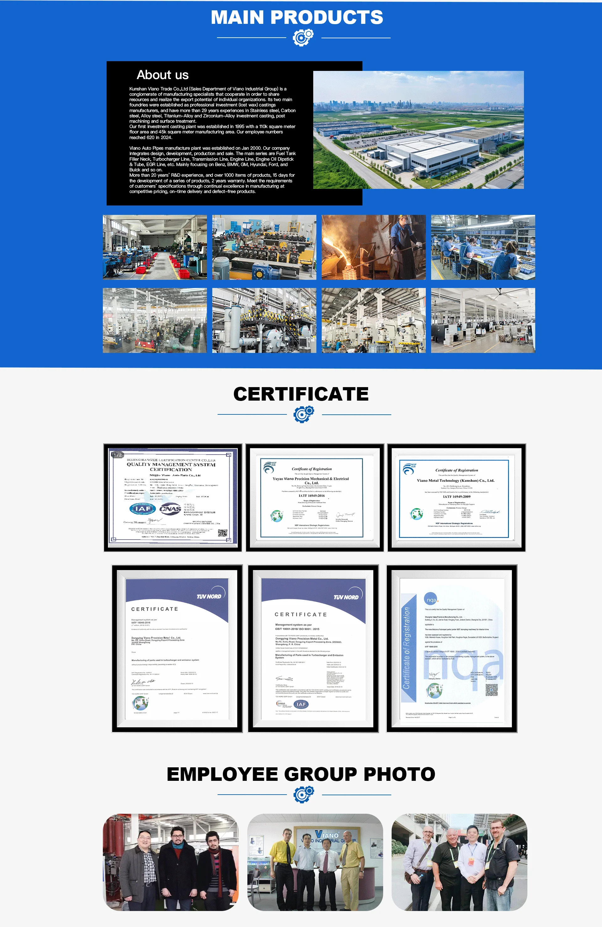 Productos principales:Tubería de aceite, fundición de inversión SS, fundición de inversión Ti, mecanizado, abrazadera en V